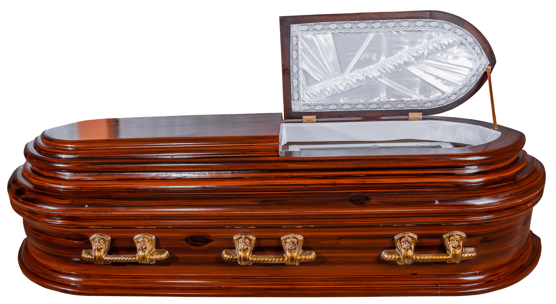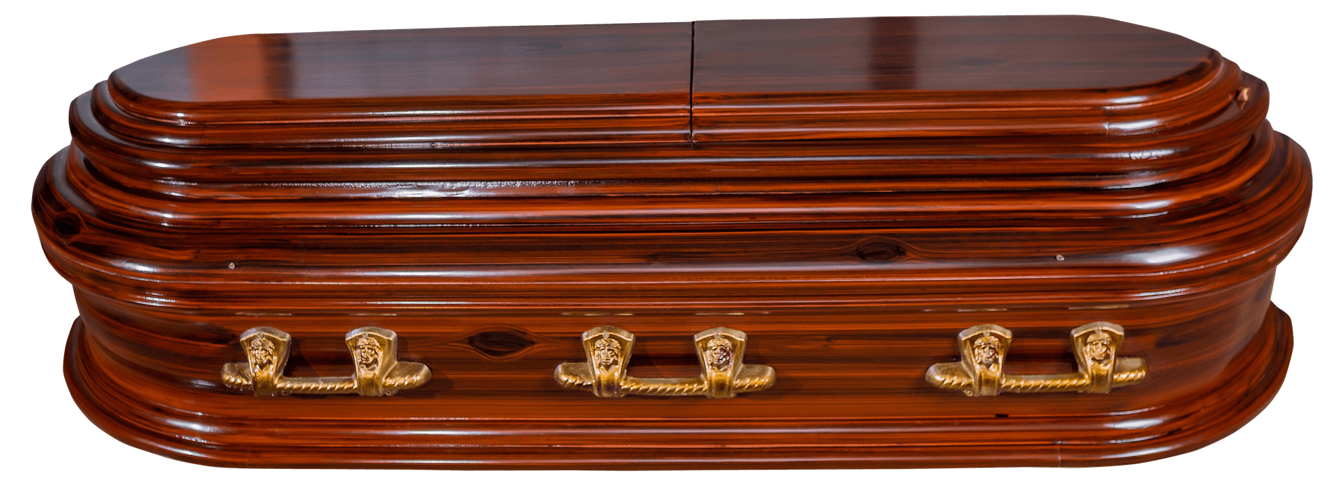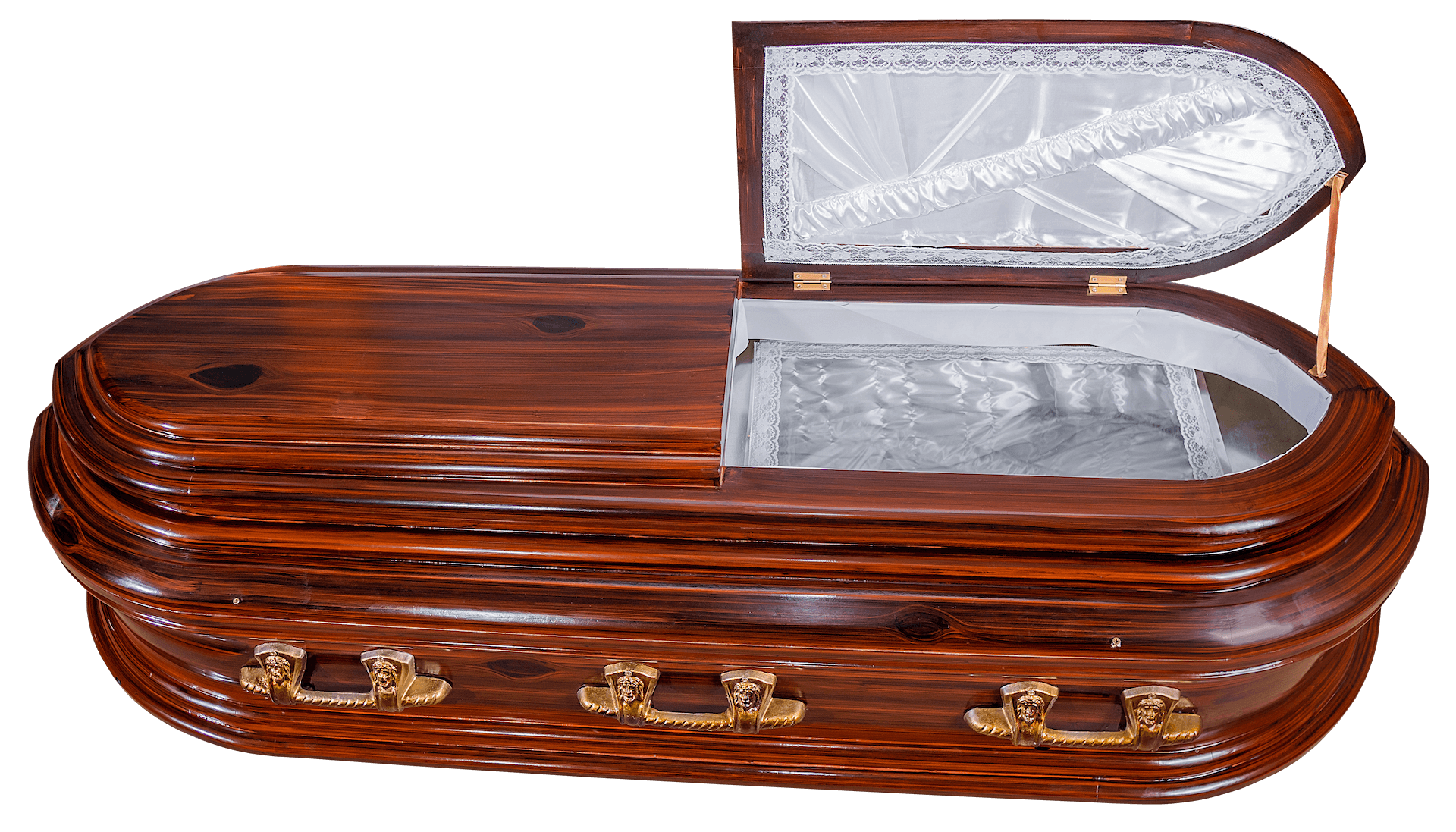 Féretro de madera alta gama con lineas redondeadas, confección en madera ochoo nativa boliviana, confeccionado de manera 100 % artesanal, manillas de acero con motivos tallados.