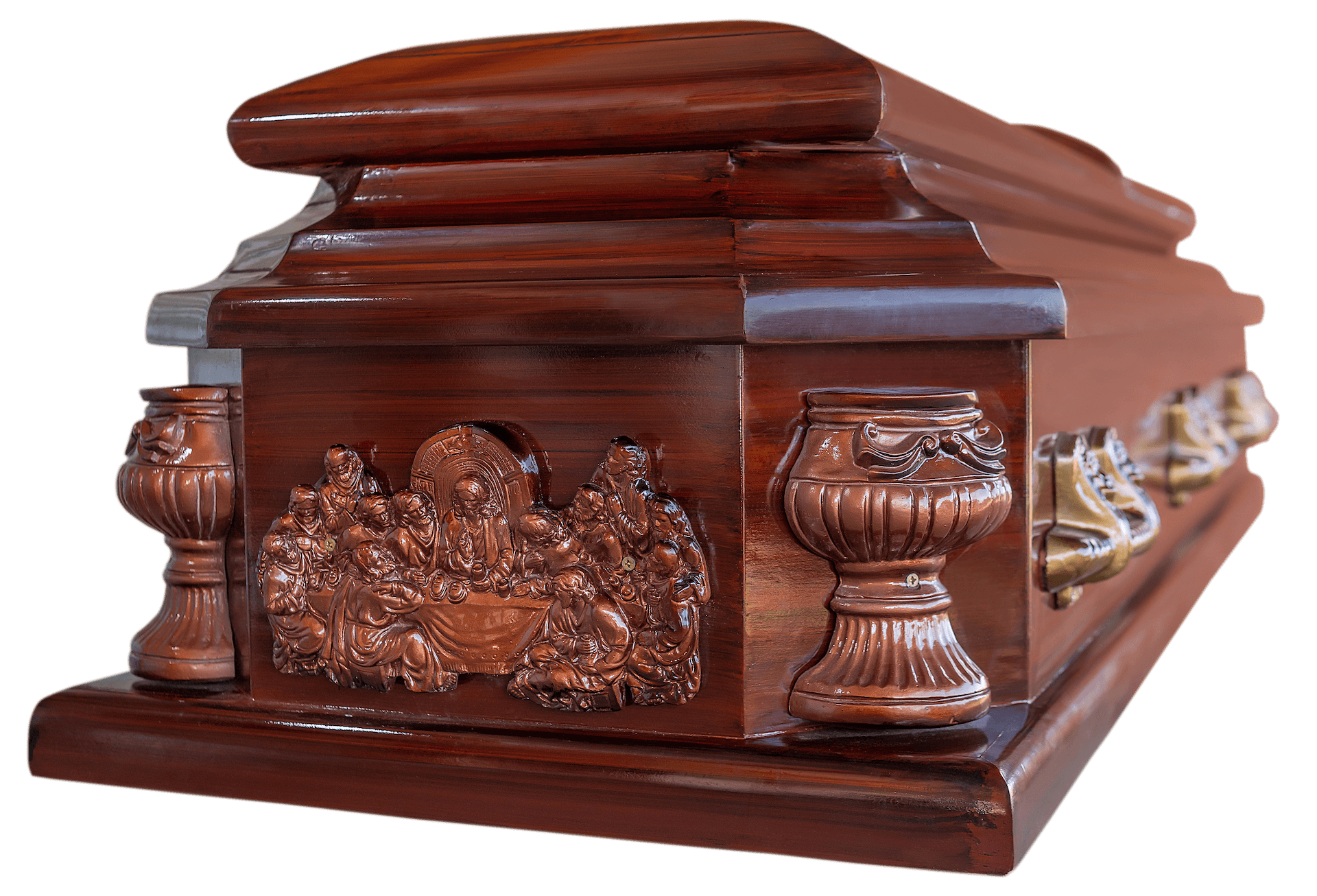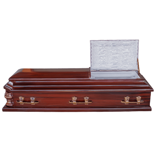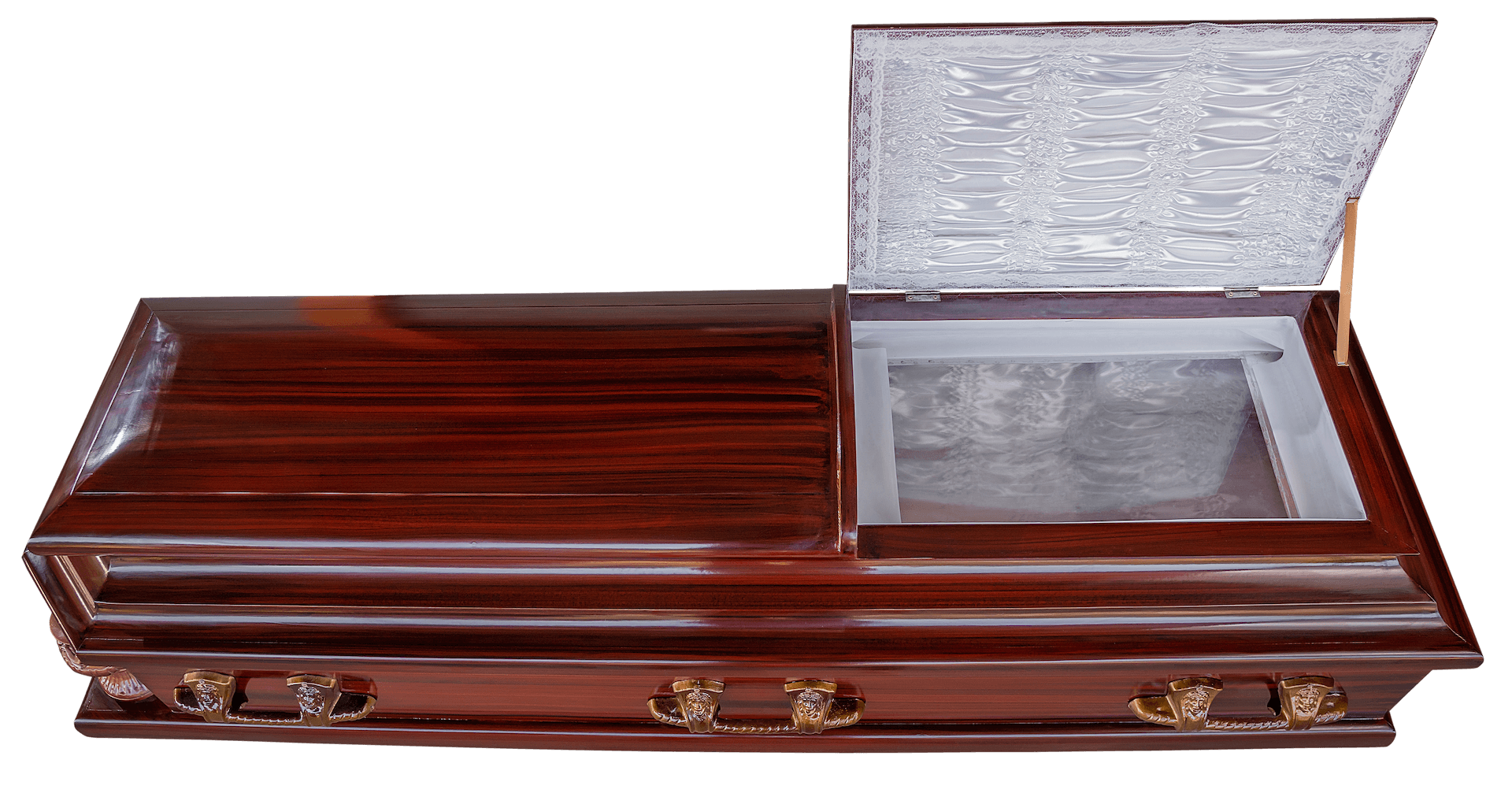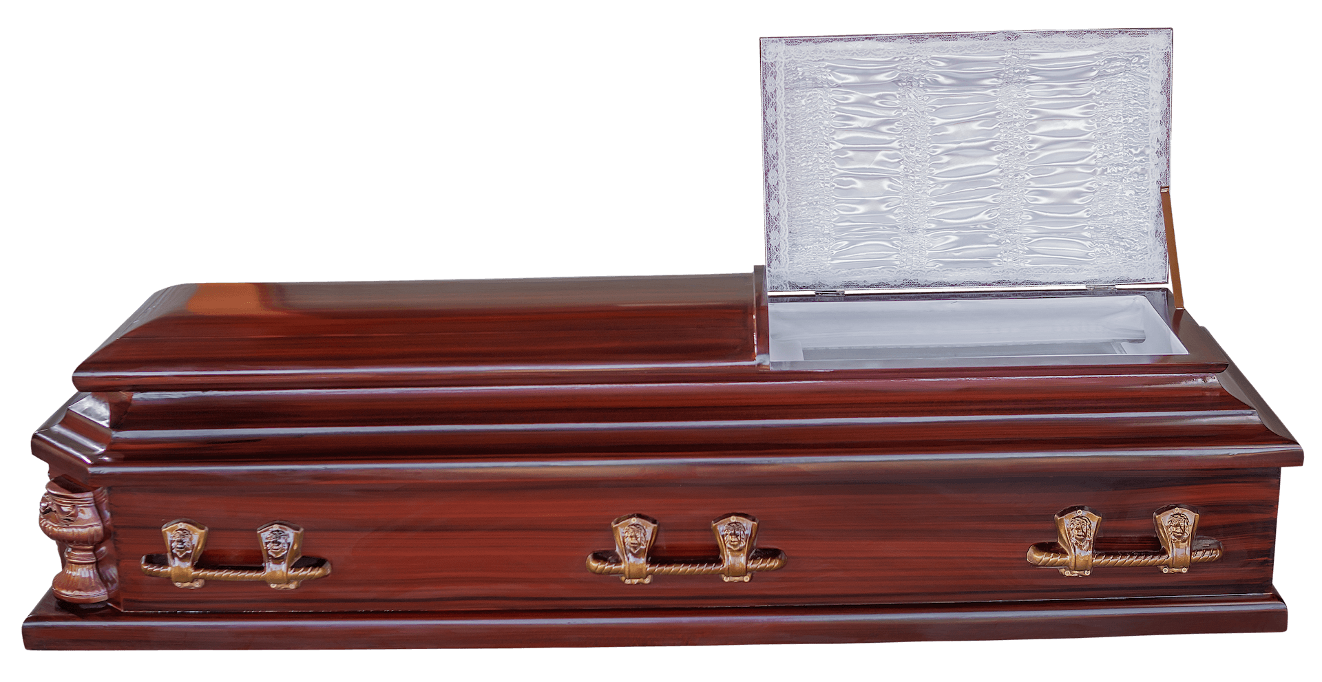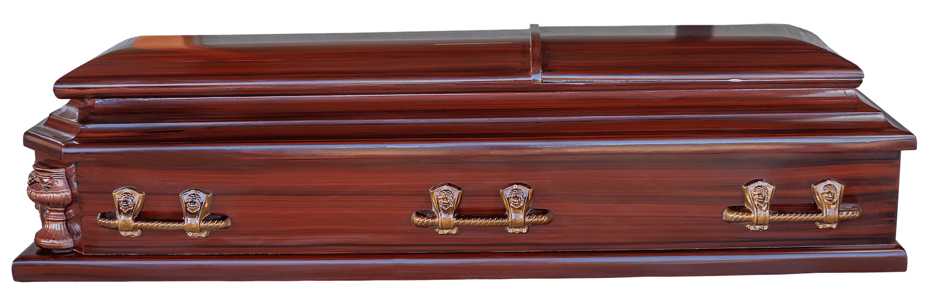 Féretro de madera alta gama caja cuadrada con cortes refinados en su parte superior, confección en madera ochoo nativa boliviana, confeccionado de manera 100 % artesanal, manillas de acero con motivos tallados y detalles decorativos con motivos religiosos.